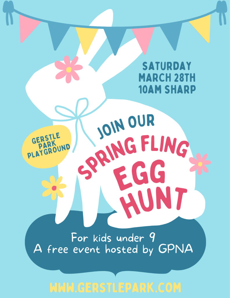 - The Details: Gerstle Park neighbors of all ages are welcome to join. Egg hunting areas are divided by age (0-5 and 6-9) so everyone has a fair shot at the candy-filled eggs and special prizes. Plus, the Bunny is stopping by for photos! 📸
